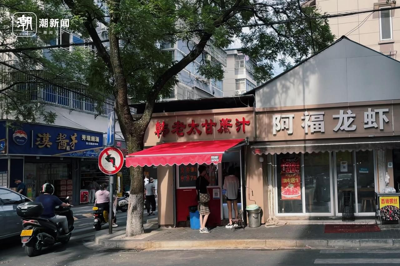 站在马路对面望,这家小店面的卷帘门上方,“韩老太甘蔗汁”几个红色大字有些掉漆了。