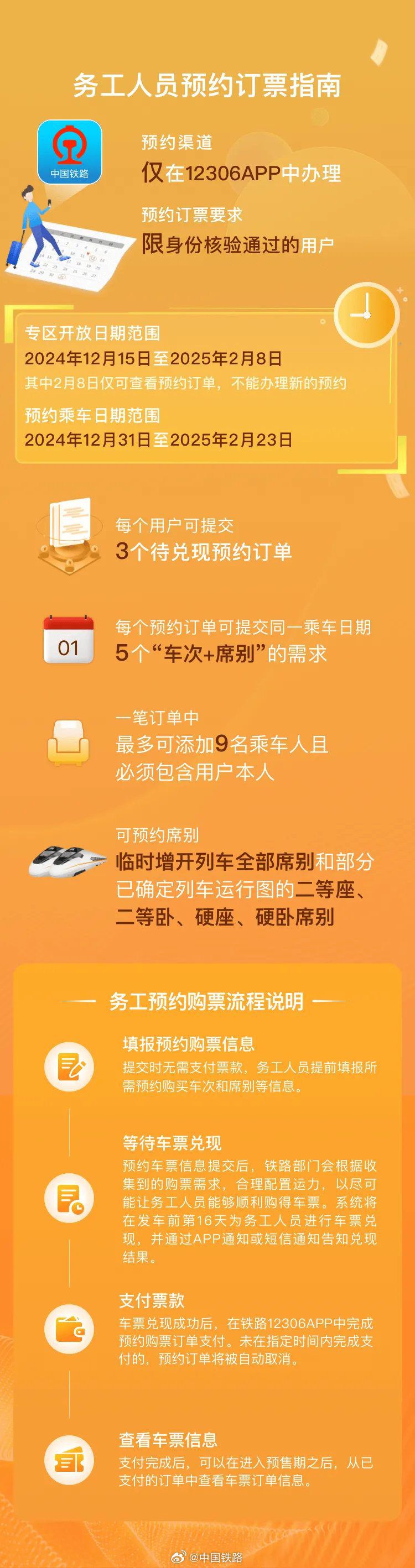 2025年1月4日,旅客可通过铁路12306网站(含手机客户端)购买2025年1月18日的火车票。今年春运购票,记住这2个关键时间点: