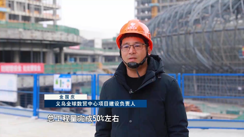 义乌全球数贸中心项目建设负责人 金国庆:总工程量完成了50%左右,预计2025年10月投用试运行。