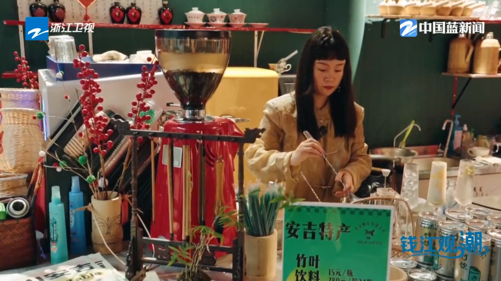 安吉剑山村的戏楼“村咖”,把白茶融入咖啡,长岛冰白茶、抹白茶拿铁等特调,每一杯都是“爆款”。