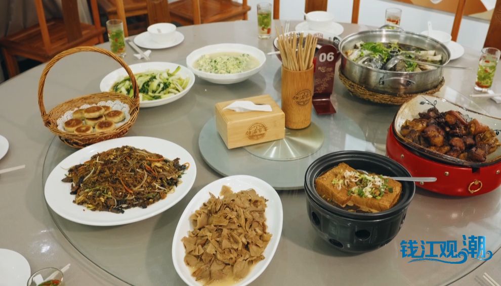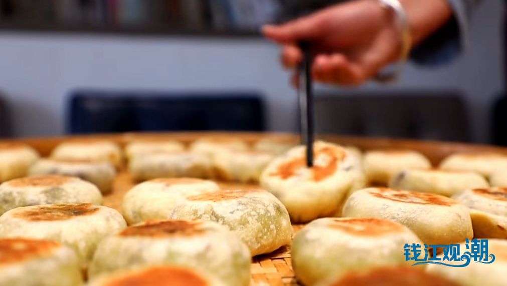 如今,源自家宴的“伯温烧饼”,已成为当地名小吃。伯温家宴餐厅老板黄琳琴介绍,“伯温烧饼”的馅料大有文章:“春天到了有春笋馅的,还有现在的萝卜丝。也有甜的,例如红豆沙的。这个饼跟别的地方不一样,这个是有故事的。”