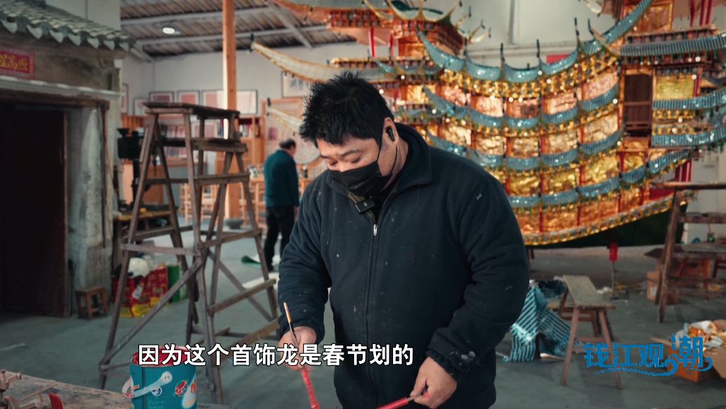 春节临近,69岁的林顺奎正在一笔一画描绘着龙头上的花纹。“这个龙做了半年多了,五点半起床,做到晚上七八点。”