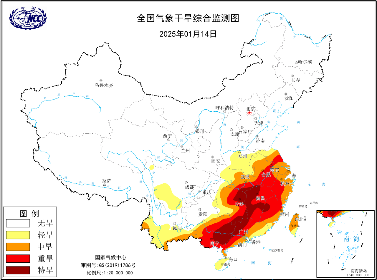 持续干燥少雨,导致南方气象干旱成片发展,目前,江南、华南出现大面积中度到重度气象干旱,部分地区甚至达到特旱等级。