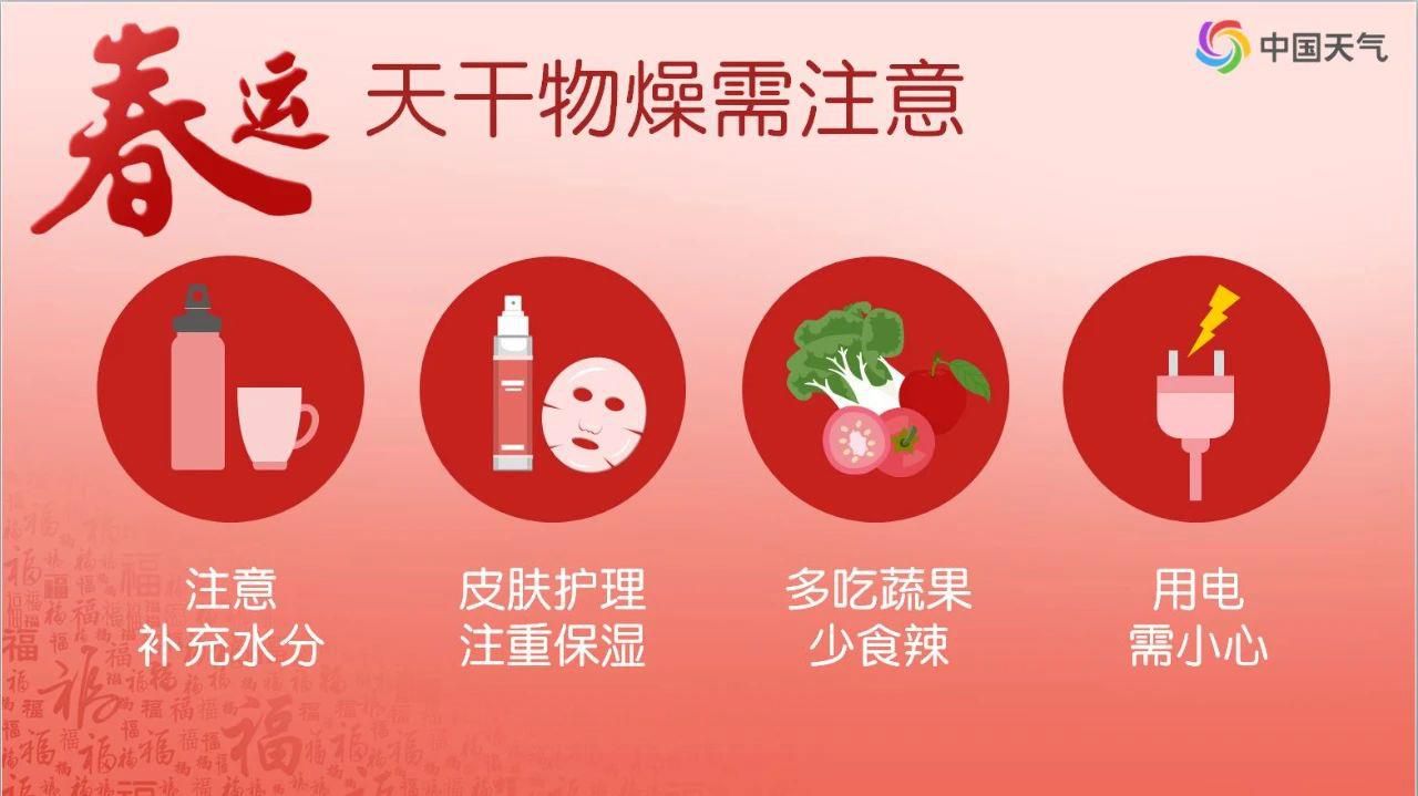 为期40天的2025年春运已正式拉开帷幕,中东部空气干燥,北方多大风天气,大家要注意勤补水,防范大风天气。