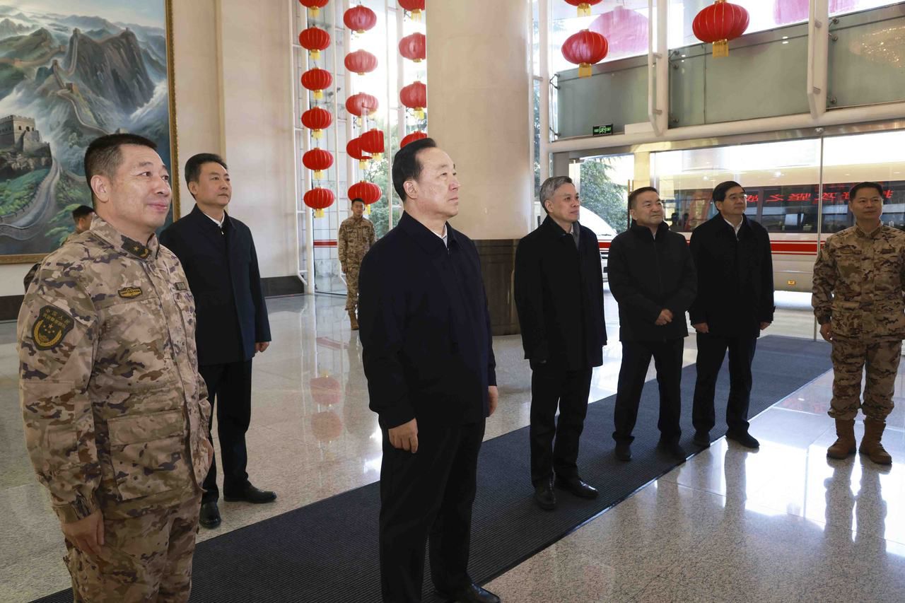 王浩等来到省军区警卫勤务队通信中队,看望慰问部队官兵,致以新春问候,并察看通信楼、宿舍楼、食堂,关切询问官兵日常训练、学习生活和节日期间值班执勤情况,感谢大家为全省经济社会发展作出的重要贡献。王浩说,春节就要到了,万家团圆时,你们坚守战位,守护着城市安全和人民安宁,向你们致敬。各级党委、政府要弘扬好拥军优属的光荣传统,全力解决部队官兵后顾之忧,巩固坚如磐石的军政军民团结。
