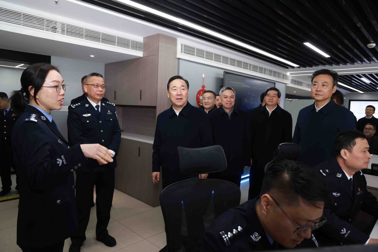 王浩等来到省公安厅情报指挥中心、杭州市公安局大数据实战中心,了解春节期间大型活动安全、春运交通出行等情况。潮新闻记者 李震宇 摄
