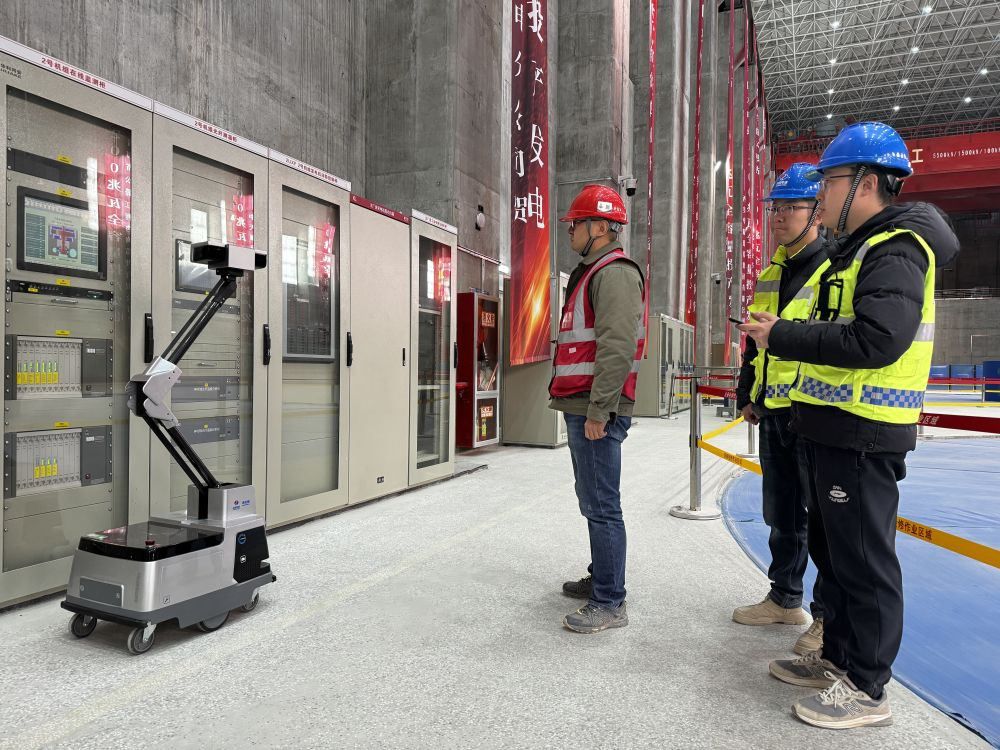 1月16日,羊曲水电站工作人员正利用机器人检查设备运行情况。新华社记者解统强 摄