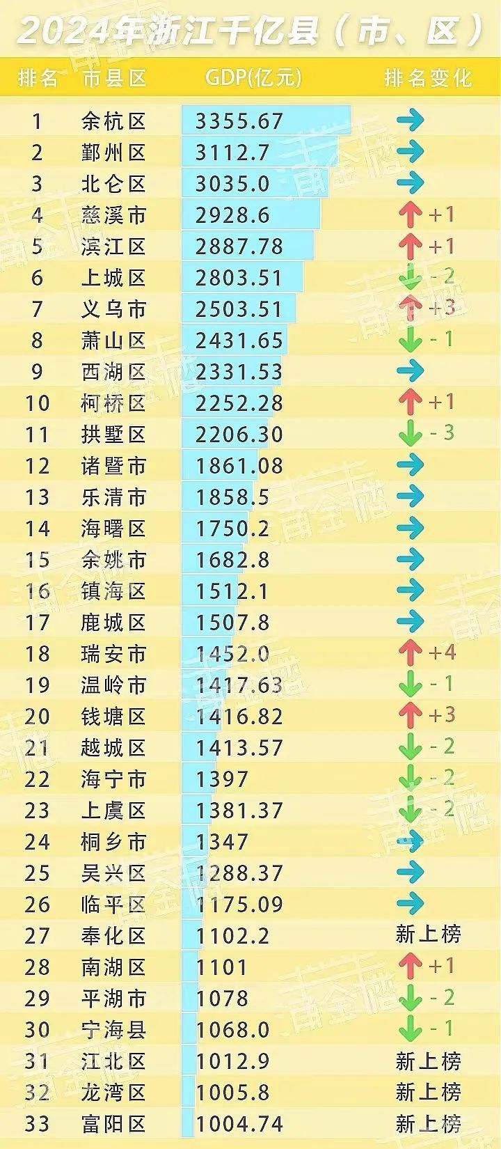 近日,随着各地陆续公布2024年成绩单,浙江千亿县(市、区)版图再次更新——