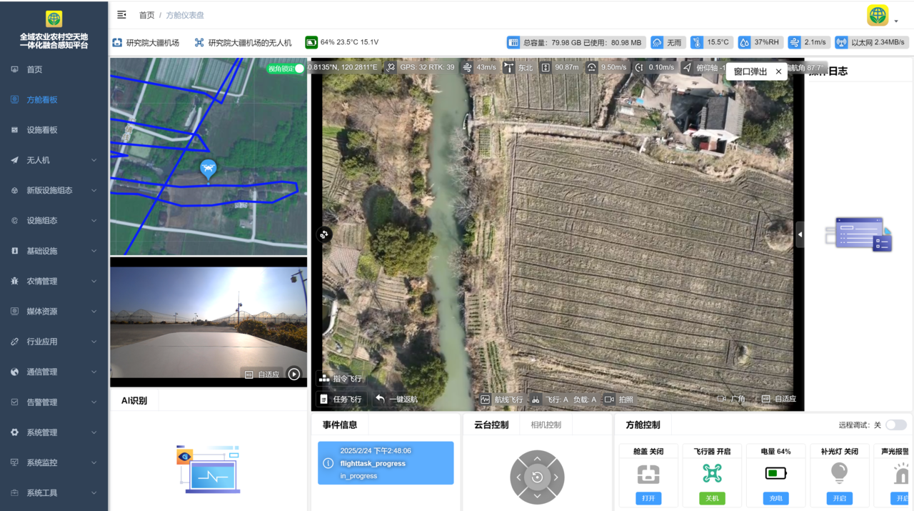 2月25日,在浙江大学新农村发展研究院,空天地一体化融合感知平台正在运行。点点鼠标,就可以调动90公里外的无人机执行飞防、监测等各项任务。