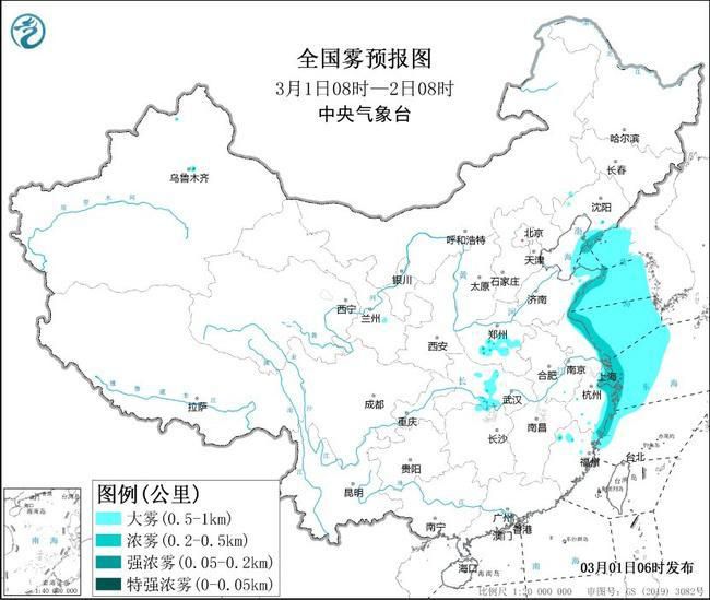 此外,3月1日早晨至上午,河南中南部、湖北中部、湖南北部、江苏东部等地的部分地区有能见度低于1公里的大雾天气,其中,河南南部、湖北中部、湖南北部等地的部分地区有能见度低于500米的浓雾,局地有能见度低于200米的强浓雾。