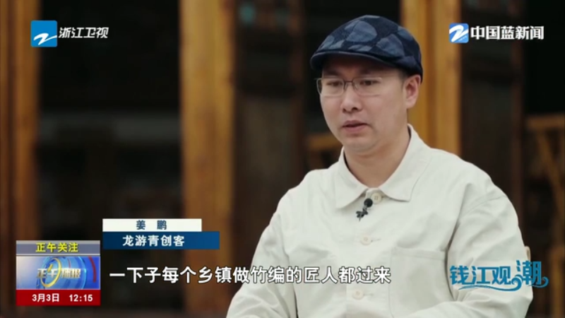 龙游青创客 姜鹏:有这么多漫山遍野的竹海,让我很震惊。小时候我家后院,也是有这么一片的竹林。 我们举办竹编大赛,一下子每个乡镇做竹编的匠人都过来,筛选出谁的手艺比较好,我们也逐个去拜访。