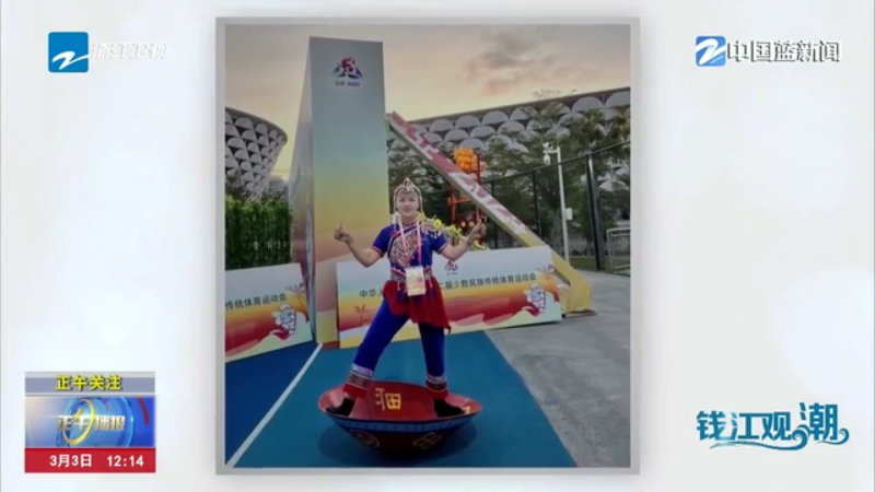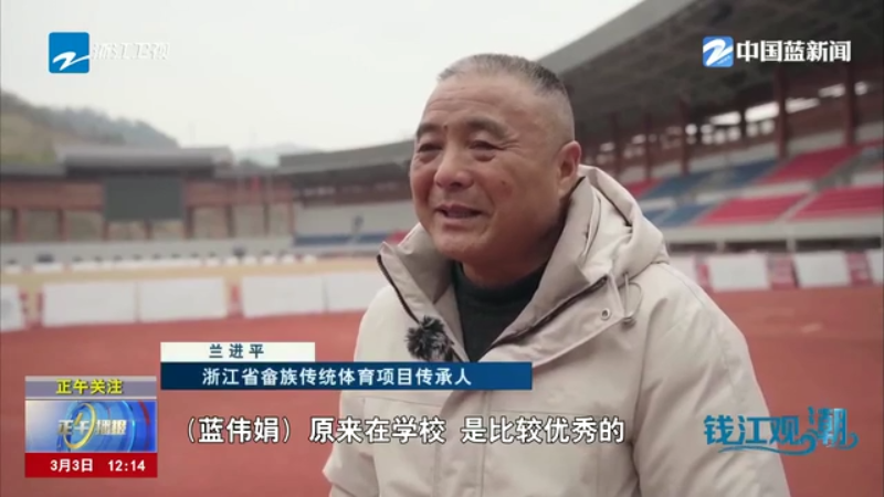 浙江省畲族传统体育项目传承人 兰进平:(蓝伟娟)原来在学校,是比较优秀的,摇得比较好,她协调性特别好。后来需要女的(畲族队员参赛),所以我们去找她。