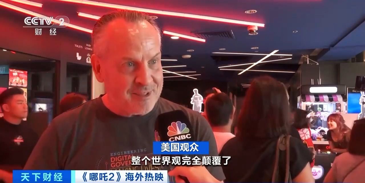 CNBC蒋钰:无论是海外发行商还是观众的反馈,都让我们感受到《哪吒2》在海外似乎掀起了一股不一样的浪潮,海外的发行商也告诉我们,如果这一次《哪吒2》最终在海外取得一些突破性的历史成绩,这也相当于是“前人栽树”,会帮助发行商日后再和当地院线谈判时,有一个对标的对象,拥有更多谈判的筹码,从而为日后更多中国电影出海打下一个坚实的基础。