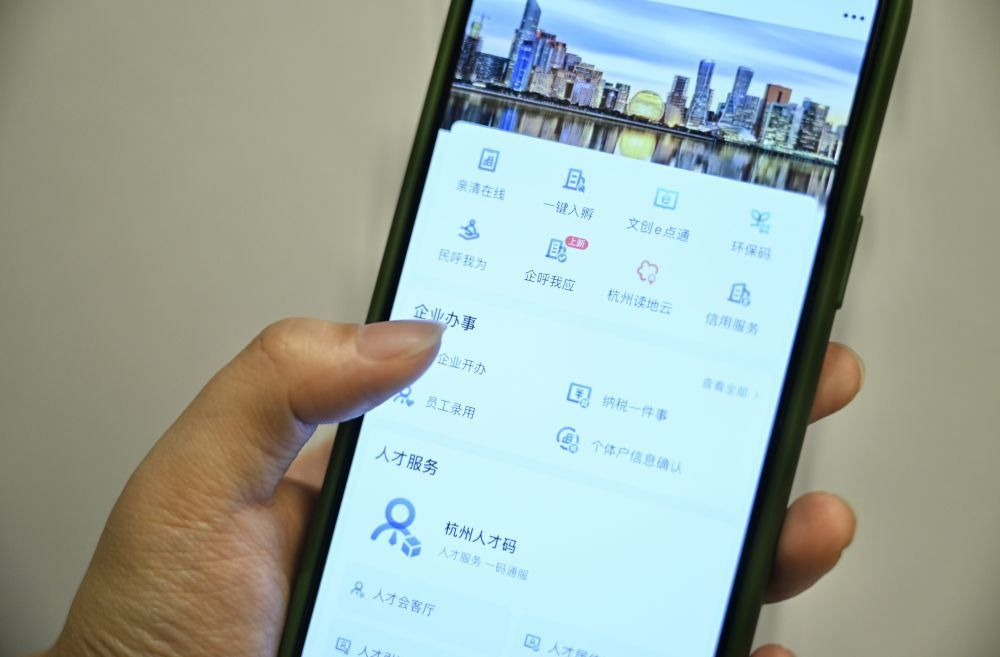 图为“浙里办”手机应用客户端上的杭州企业服务专区。新华社记者 刘铭翔 摄