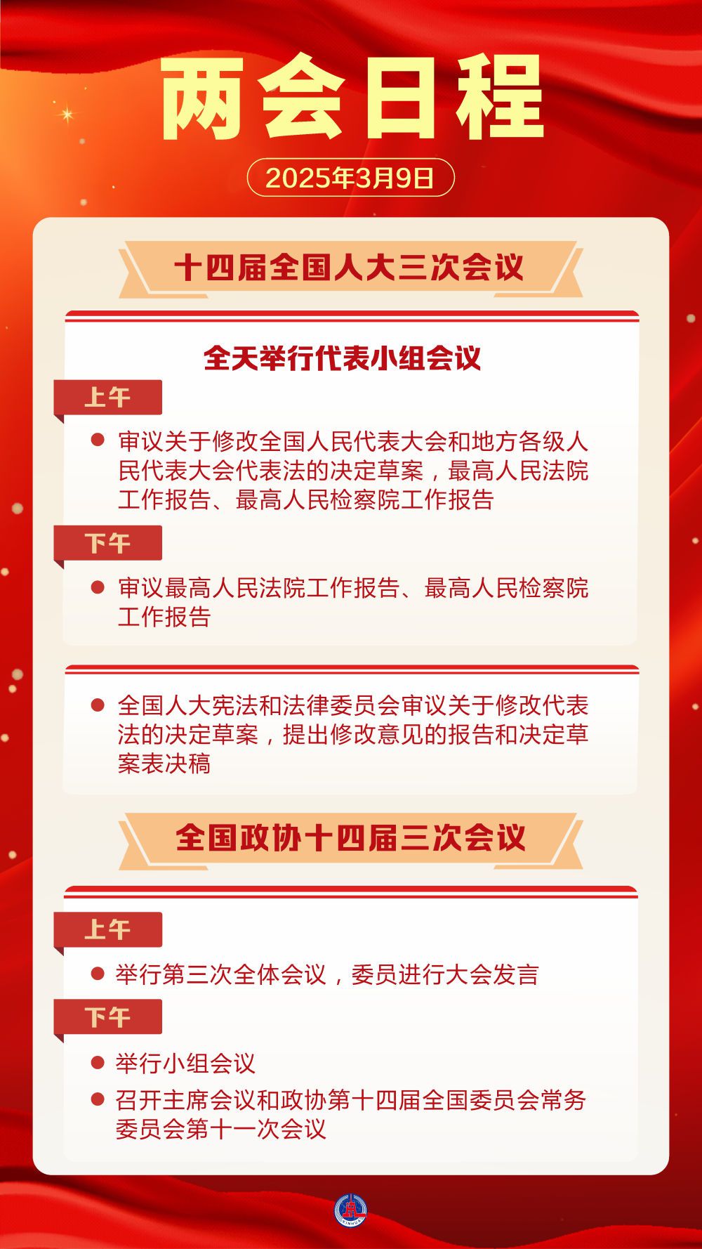 3月9日,人代会审议“两高”工作报告等,政协举行第三次全体会议。