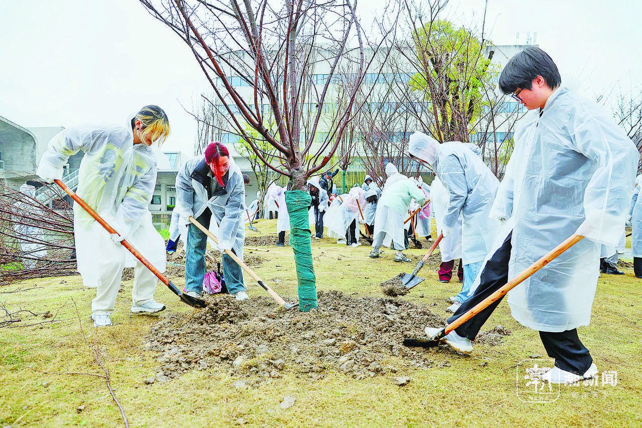 3月12日,中国美术学院师生在良渚校区中心湖畔共同植树,为校园增添绿意。 记者 魏志阳 通讯员 庞洋 摄