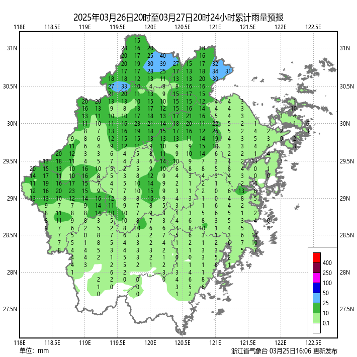 省会杭州的情况略有不同。有气象记录以来,杭州未在3月出现过高温天气(最早为4月17日),3月最高气温纪录则为32.8℃(2007年3月31日)。昨天,杭州最高气温已达31.7℃,预报今天最高气温34℃,所以创造3月高温极值几乎是板上钉钉。