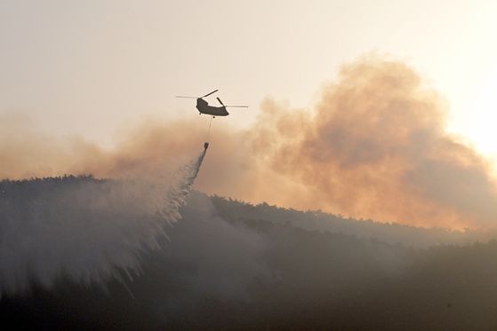 韩国东南部部分林区21日发生山火,受强风、干燥等天气影响,火势凶猛,灭火工作进展缓慢。韩国行政安全部25日发布消息称,当天山火仍在四个地区持续,过火面积已超1.4万公顷。