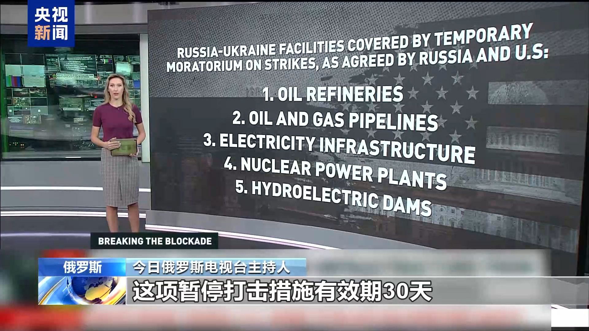 今日俄罗斯电视台主持人:俄美还敲定了俄乌部分停火的细节,清单里有炼油企业、油气管道、电力基础设施、核设施和水电站大坝。这项暂停打击措施有效期30天,自3月18日生效,可通过相互协商延长。如果一方违反措施,另一方有权不遵守相关义务。