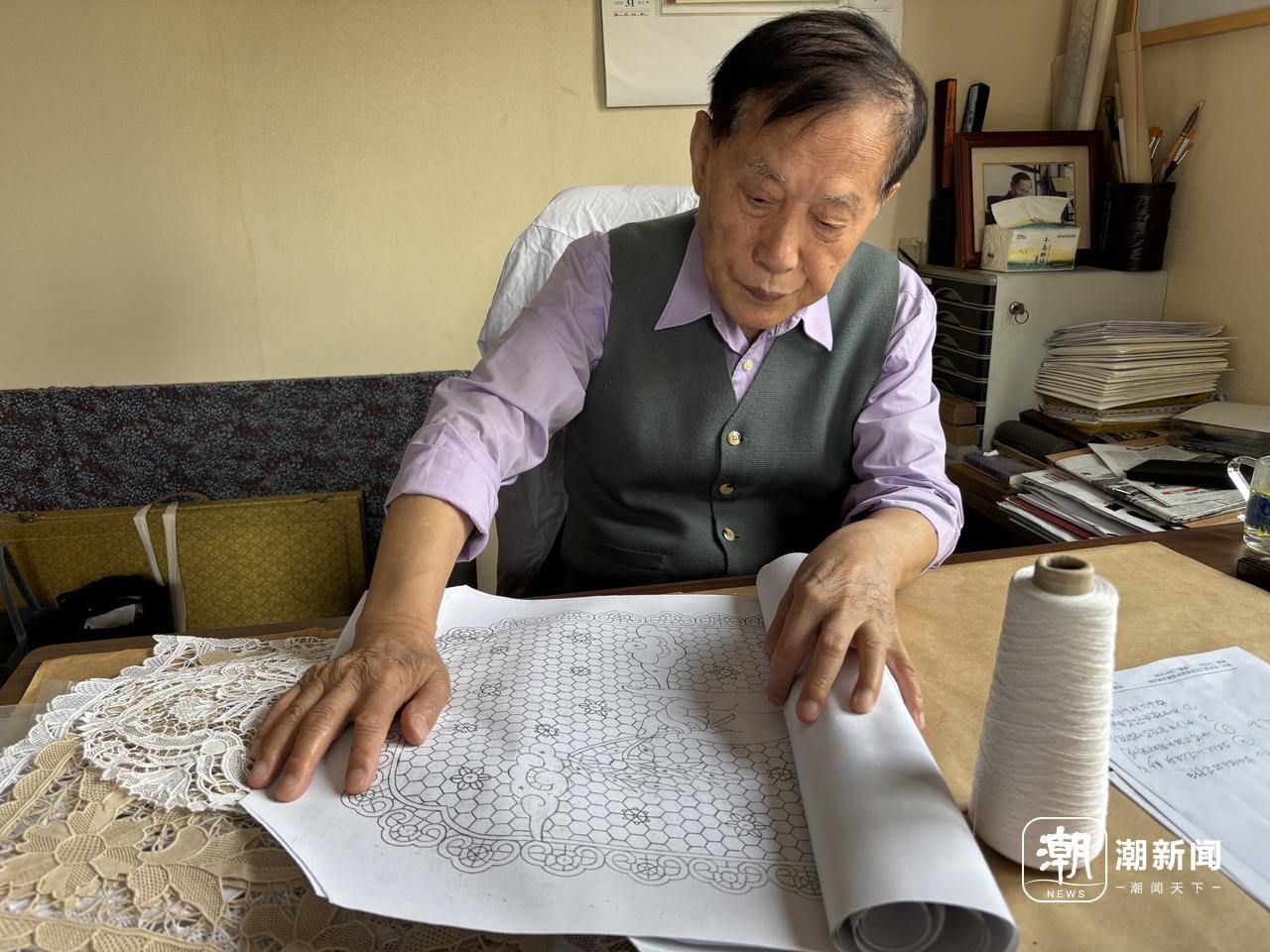 花边制作技艺(萧山花边制作技艺)国家级非遗代表性传承人赵锡祥展示制作萧山花边的图样。记者 陈黎明 摄