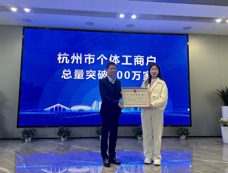 叶泽霞是杭州第100万户个体工商户。至此,杭州市个体工商户总量突破100万户大关,这是继2024年企业总量突破100万户、经营主体总量突破200万户后,实现的第三次突破。