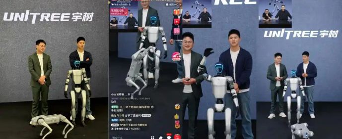 3月31日晚,在某直播间,“全球首个AI机器人主播”宇树科技人形机器人G1登上电商直播舞台。