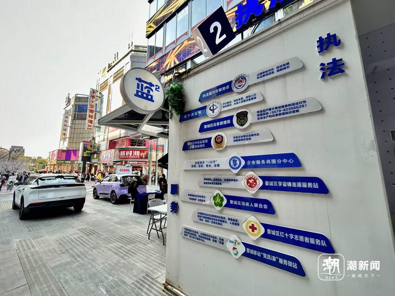 “最近,我们将外摆审批窗口前移至商圈的执法‘蓝次方’服务岗亭,同时结合‘智慧商圈’数字应用,让商家可以就近办理、一键完成外摆、促销等各种申请。”金华市婺城区综合行政执法局办公室主任陈进说,这些举措背后,是城市治理的“守门员”“管理者”身份向“服务员”角色的不断转变。