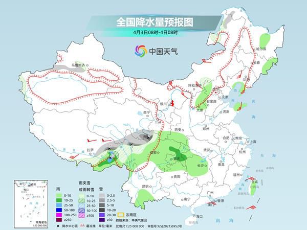 中央气象台预计,今天,新疆沿天山一带和南疆西部山区、内蒙古东北部、西藏东部、青海东南部、川西高原北部等地部分地区有小到中雪或雨夹雪,其中,西藏东北部、川西高原北部等地部分地区有大雪。吉林东部、辽东半岛、山东半岛、山西中北部、西藏东南部、甘肃南部、陕西南部、西南地区东部、江南西部、云南南部、台湾岛等地部分地区有小到中雨,其中,西藏东南部部分地区有大雨。
