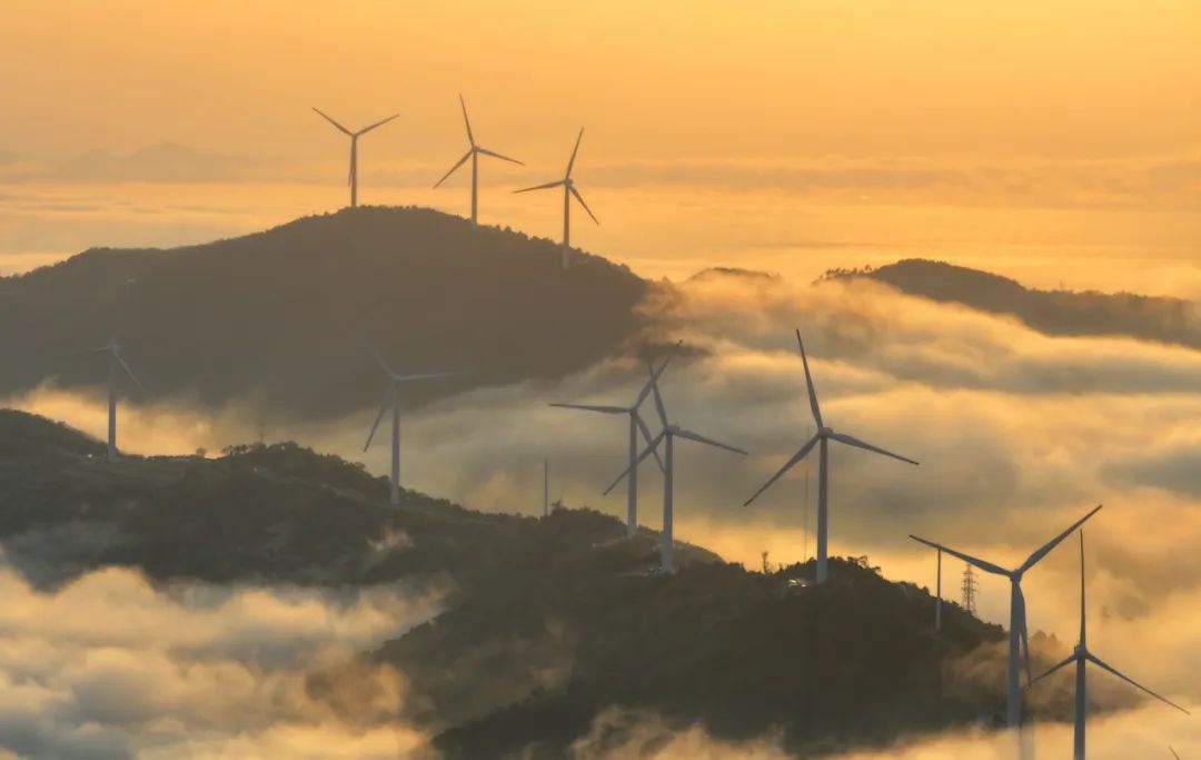 台州玉环,风力发电机矗立在高山云海中 图源:潮新闻客户端
