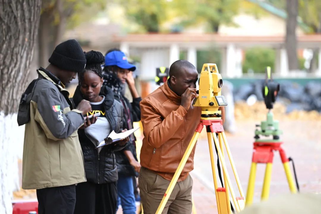 来自几内亚的学员在天津铁道职业技术学院学习使用测距仪器 图源:新华社
