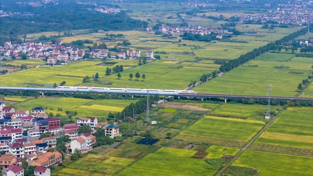 金华婺城,一列高铁列车飞驰在田园间 图源:潮新闻客户端