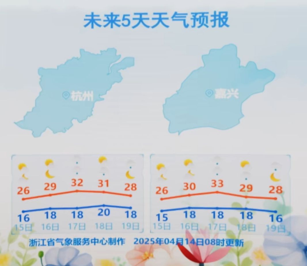 除浙北北部外,最高气温都越过了25℃,苍南甚至达到了31℃。