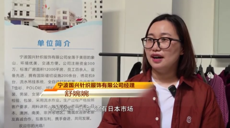 宁波国兴针织服饰有限公司经理 舒婉婉:部分企业去开拓了其他地区的市场,比如欧洲、中东,还有日本市场,尤其是一带一路,跟随国家政策发展。
