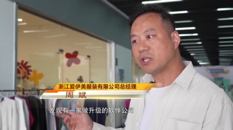 浙江爱伊美服装有限公司总经理 周斌:刚刚在那个摊位上面去转了一圈,发现有一家做升级的软件公司,主要做裁剪优化这块。我们下个星期就邀请他们去我们企业参观考察,希望能够达成一定合作。