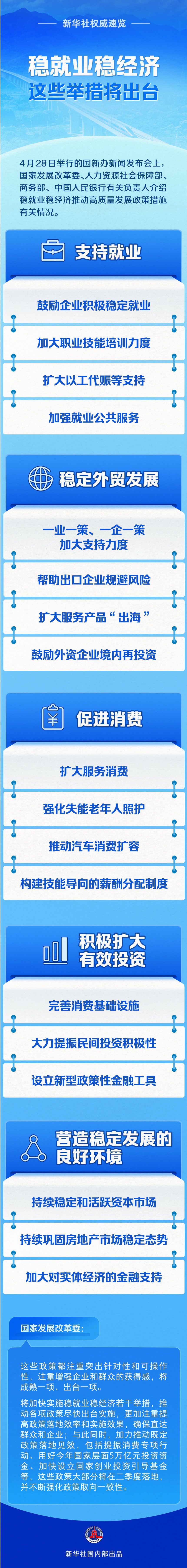 4月28日,国新办就稳就业稳经济推动高质量发展政策措施有关情况举行新闻发布会,宣布了若干措施。