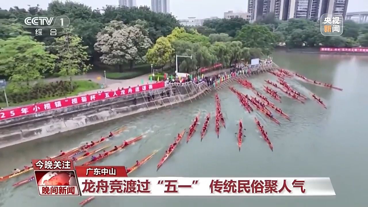 龙舟竞渡过“五一”,传统民俗聚人气。在广东中山小榄镇,五人龙舟邀请赛精彩上演。30多条龙舟在长达22公里的河涌赛道上你追我赶,挥桨竞速。河道两岸,围观的群众热情地为参赛选手们加油鼓劲。