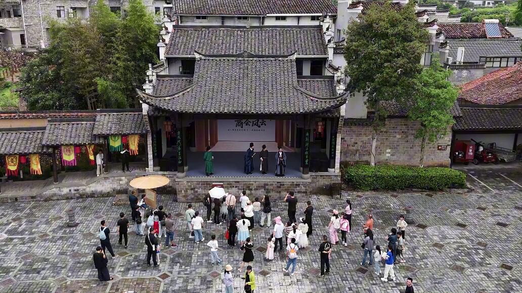 江山廿八都古镇位于浙闽赣三省交界处,素有“东南锁钥、入闽咽喉”之称。 “五一”假期,廿八都古镇以古镇历史故事为蓝本,每日推出近20场沉浸式剧游。窄窄的青石板道上,身穿汉服的NPC(非玩家角色)们演绎着古镇商贸风云。通过商会选举过程中的种种故事,游客们跟随着NPC一起探寻古镇人文魅力,深度领略廿八都的文化和历史。