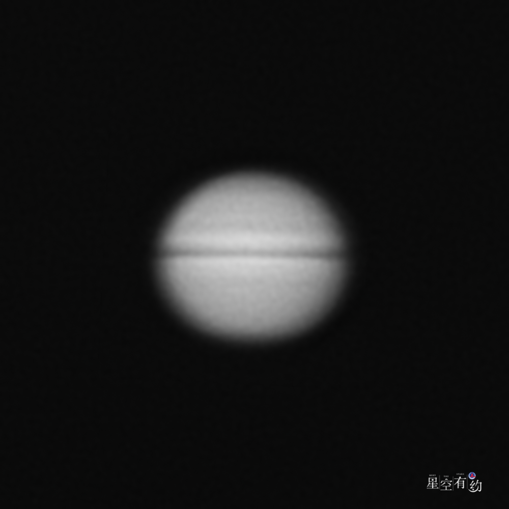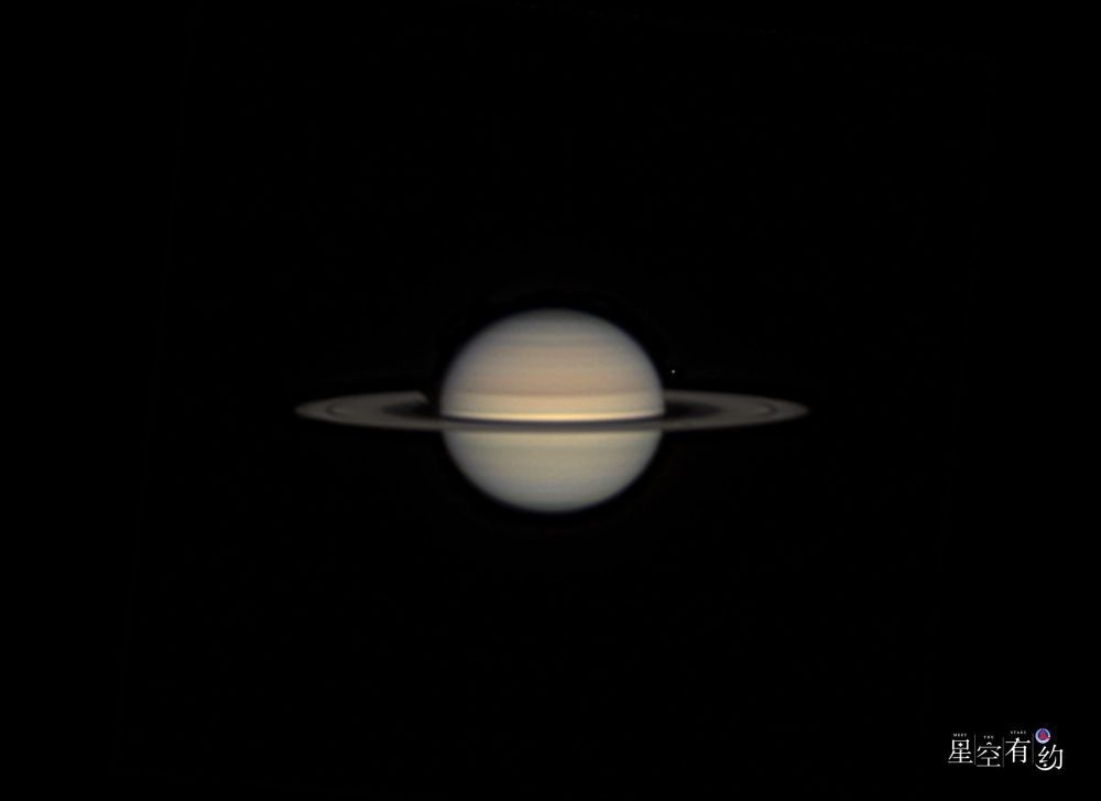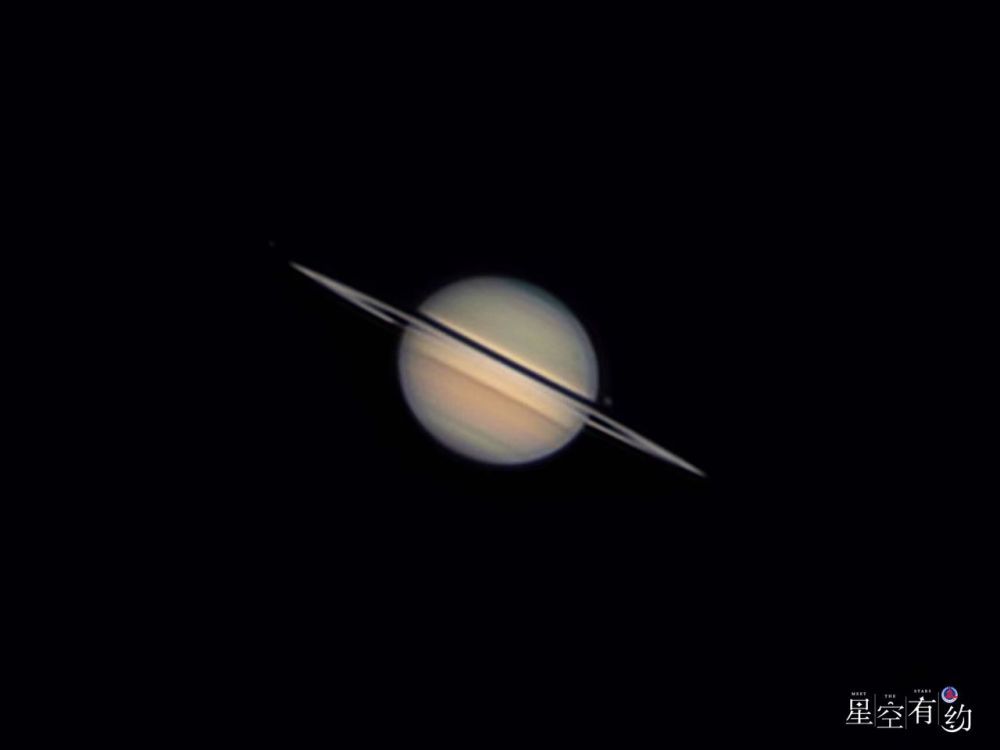 2025年4月29日在广东中山拍摄的土星特写,土星中间的黑线是土星环及其投影。(汉玲 摄)