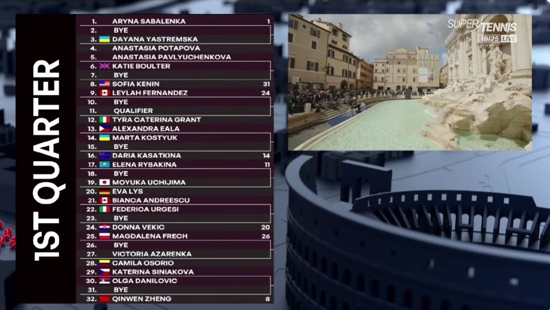 WTA罗马1000赛公布女单正赛签表,8号种子郑钦文再次和头号种子萨巴伦卡进入1/4区。首轮郑钦文轮空,次轮将面对斯尼亚科娃和达尼洛维奇的胜者。