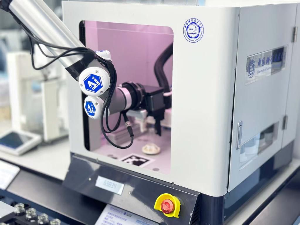“机器化学家”用机械臂拿取样品。(受访单位提供)