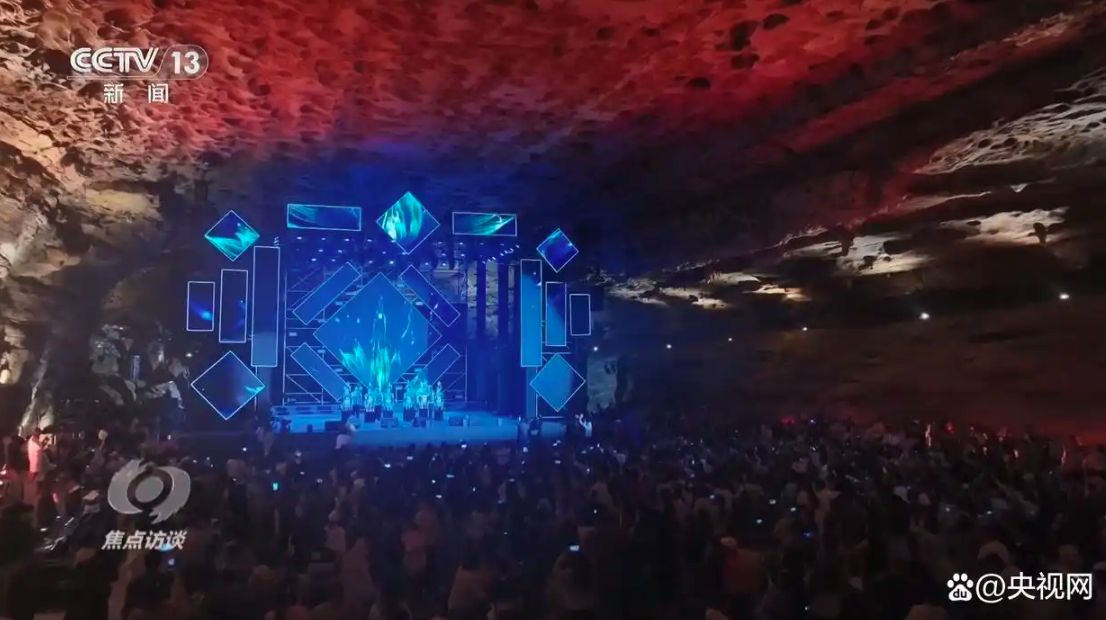 贵州绥阳县温泉镇,因溶洞喀斯特地貌资源丰富,假期里当地将音乐会“搬进”了溶洞,专业音响系统被布置在钟乳石群间,使音乐既能保留原声质感,又能叠加洞穴独有的空灵回响。洞中主舞台还引入全息投影技术,将银河系动态光影投射在亿万年形成的洞顶岩壁上,营造“地心音乐会”的奇幻氛围。