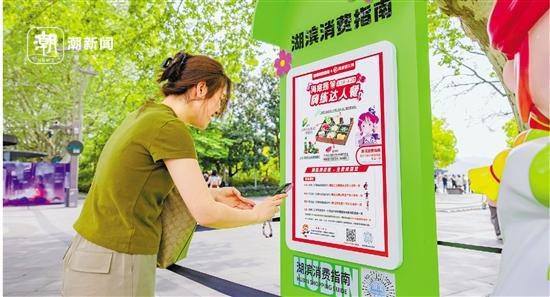 日前在杭州湖滨步行街,游客扫码进入“湖滨消费指南”。 记者 曹坚 摄