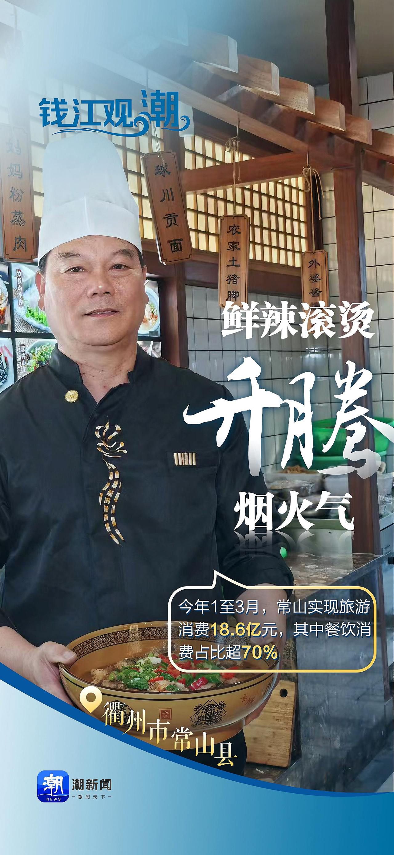为一顿美食奔赴一座城,每到节假日,有不少像吴倩蕙一样的吃货“特种兵”来到常山,感受烟火气里的“鲜辣滚烫”。今年1至3月,常山接待游客218.1万人次,实现旅游消费18.6亿元,其中餐饮消费占比超70%。