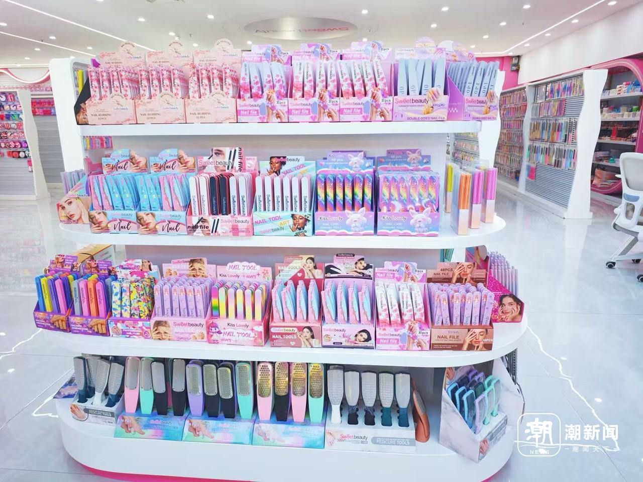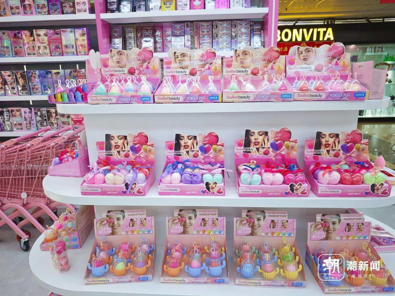 走进孙敏的新店,她正热情接待客商。记者边逛边看,店内陈列着琳琅满目的美妆用具,从造型精致的粉扑到各式各样的美妆刷,再到细腻的梳子和逼真的假睫毛,令人目不暇接。“新店面积超过330平方米,产品基本上是自研自产自销的。”孙敏指着货架上最新研发的纳米纤维洁面仪说。