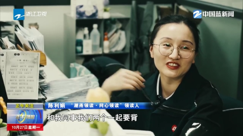 “潮甬领读·同心领读”领读人 陈利娟:抬眼看两眼我就可以背,和我同事我们两个一起要背,我说我们俩谁先背会,有那种争抢的感觉。
