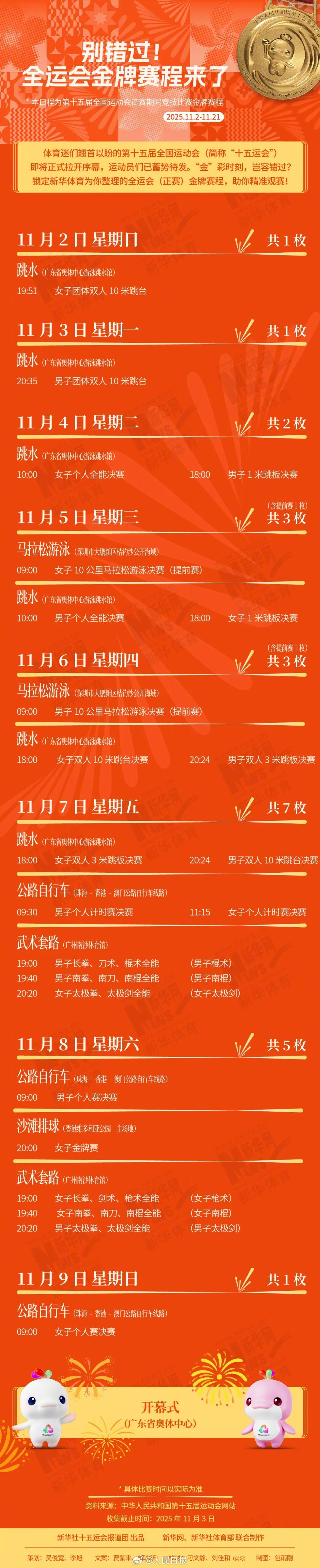 十五运会即将正式拉开序幕,运动员们已蓄势待发。别错过,快收藏这份全运会(正赛)金牌赛程!