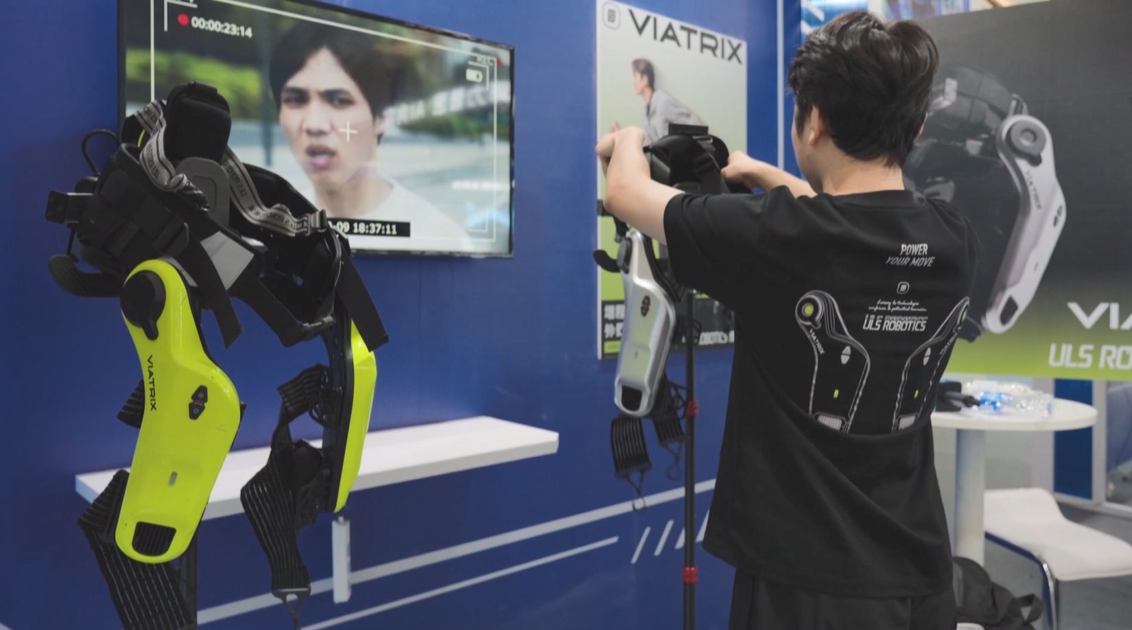 在这家来自上海的科技公司展位,穿上这套增程动力外骨骼机器人,普通人也能有效减轻负重,让登山、骑行和长时间步行变得格外轻松。