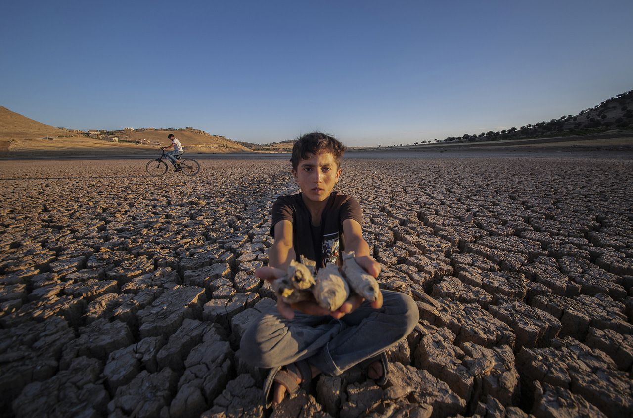 当地时间2025年7月4日,受长期干旱和极端高温影响,土耳其一池塘干涸