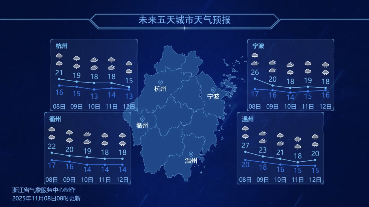 冷空气到来前,天气着实有些让人大跌眼镜——尽管阴雨密布,昨天白天沿海和浙南的气温依旧热情,最高气温大部在25~27℃,最高的永嘉达到28.3℃。