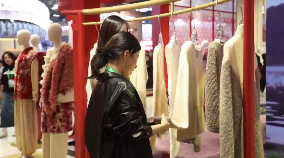 “今年我们通过针织的形式,把羊绒衫这个单体变成一个时尚款式。同时,我们精纺的超薄120克羊绒面料,这目前在国内是首创。”康赛妮集团展馆负责人徐君秋说道。